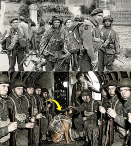 La noche del 5 de junio de 1944, un viento frío atravesaba un aeródromo británico casi silencioso. Bajo luces tenues, los paracaidistas revisaban por última vez sus equipos, ajustando cascos, comprobando arneses y pesando mentalmente lo que significaba el inminente salto hacia la incertidumbre. Entre ellos, rompiendo la uniformidad de botas y mochilas, se encontraba un compañero inesperado: un perro grande, de pelaje negro brillante y mirada atenta, que observaba todo con una calma que sorprendía incluso a los soldados más experimentados.