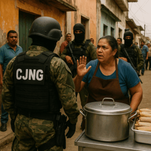 Ella levantó la mirada. Frente a su puesto estaban tres hombres. No exhibían armas a la vista, iban vestidos con pantalones de mezclilla, sudaderas y gorras. A simple vista podrían parecer cualquier grupo de muchachos del barrio. Pero había algo en su postura, en sus ojos, en la forma en que uno de ellos miraba a todos lados como si hiciera un cálculo invisible, que decía lo contrario.